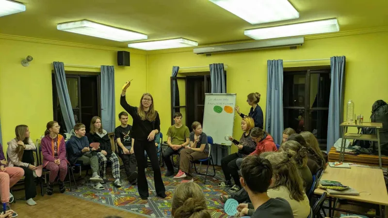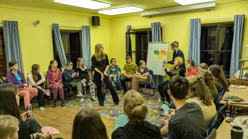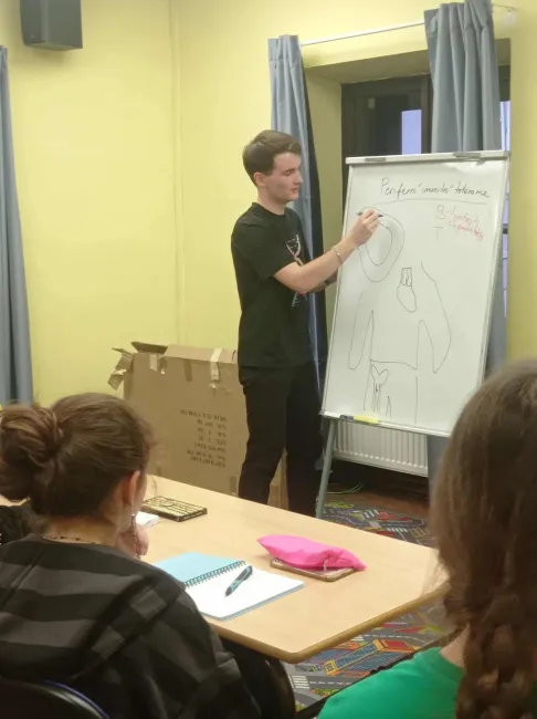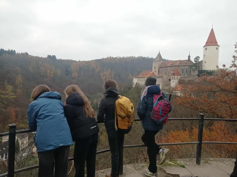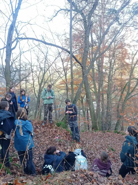 Druhý den se tradičně nesl ve znamení celodenního výletu. Kromě hradu Křivoklátu jsme navštívili především přírodní krásy údolí Rakovnického potoka. Cesta vedla dendrologickou stezkou naučného areálu Křivoklát až přes několik vyhlídek na hrad a řeku Berounku. V druhé půlce nás čekal výstup kolem Roztockých vodopádů a sestup zpět do informačního střediska. Nechyběla ani explorace místní biodiverzity a její demonstrace všem účastníkům. I přesto, že vegetační sezóna je již za námi, jsme nalezli velké množství organismů z živočišné, rostlinné i houbové říše. Po odpočinku jsme si poslechli odpolední dýchánek "Za co byla udělena letošní Nobelova cena za fyziologii a lékařství?" a vyzkoušeli sociologický experiment o active listening. Na závěr dne jsme zhlédli film zaměřený k tématu podmořský svět.