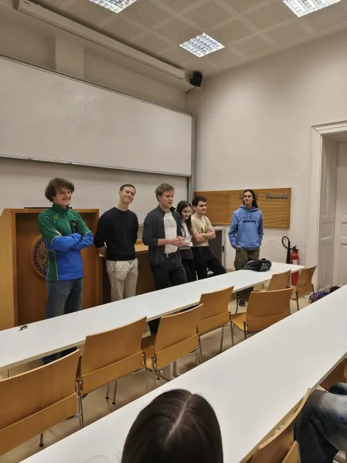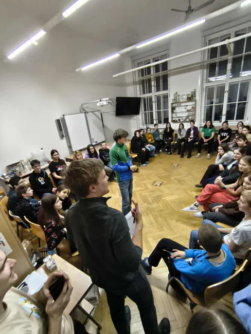 Zimní Běstvinka 2026 s tématem "Ledové království" na Přírodovědecké fakultě Univerzity Karlovy oficiálně zahájena! První den jsme odstartovali seznamovacími hrami, mezi kterými již tradičně nechyběl "speed dating" a také nově průzkum oblíbenosti různých druhů pizzy a kebabu. Následně si účastníci vyslechli povídání o tom, zda "Přijde doba ledová?" v podání Mikuláše Vodenky. Zároveň jsme nahlédli do místních entomologických chovů, kdy si účastníci doslova na vlastní kůži pomazlili exotické druhy hmyzu. Večer pak někteří zakončili u hraní deskových her, ostatní šli naopak nabírat síly na zítřejší ekurzi.